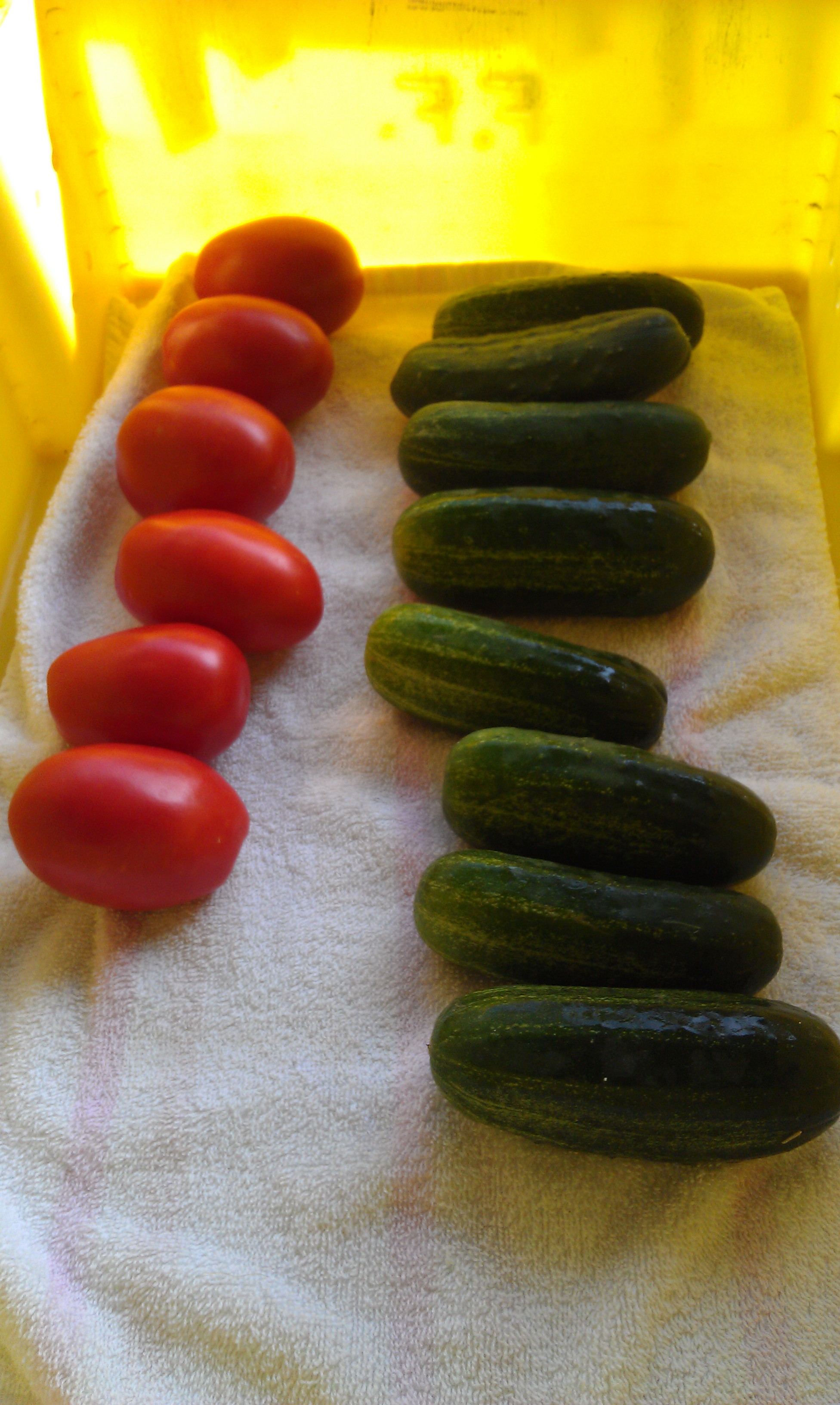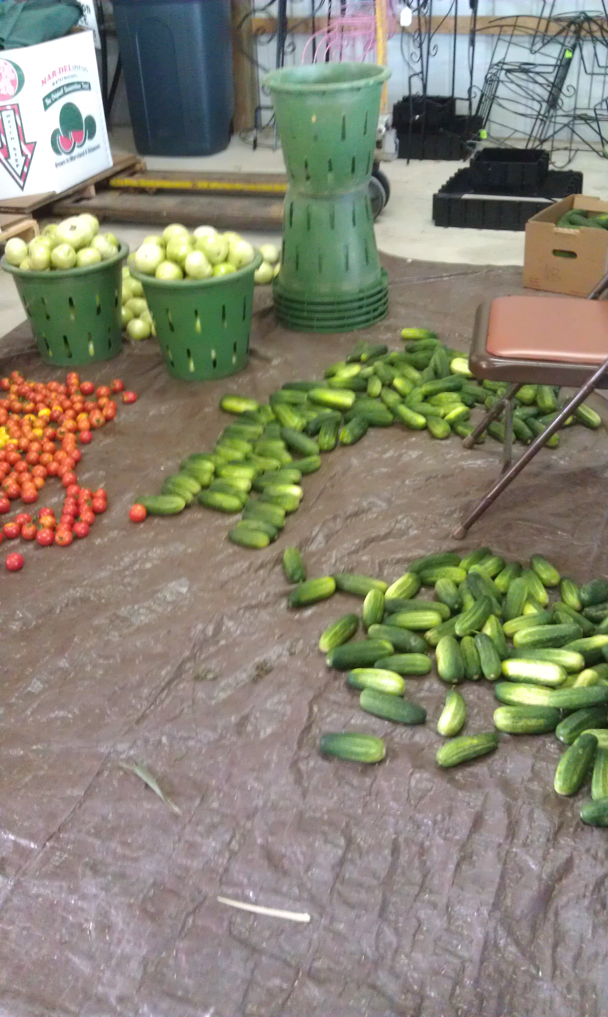 Then we pick the best ones and lay them in a yellow try with a towel, so they don’t get bruised. Many classes differ on the number required (i.e. best 4 green tomatoes, best 12 snap beans, best 3 yellow squash).