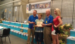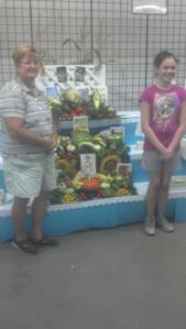 My sister and I helped Mom lay out a lot of vegetables for her entries in the Garden Vegetable Department in the Dover Building the Wednesday before the fair starts. It’s a long stressful morning but for some reason, we keep doing it. Farmer Dan hates it mainly because it’s very challenging to find multiple kinds of one vegetable that are perfect and match.  Most of the veggies are thrown out on Tuesday night of the fair and we do it all over again on Wednesday morning.
