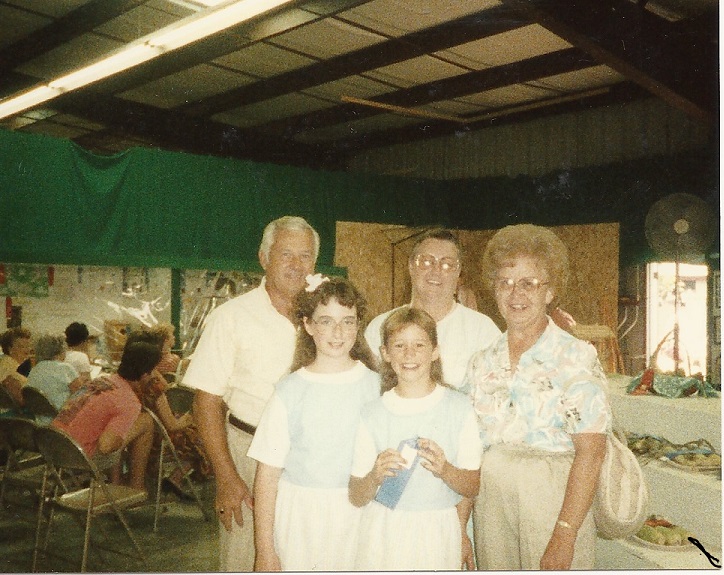 In the old 4-H Building at the fair. Janelle and I just gave our sewing demonstration. (Pop-Pop Bob, Janelle, Christy, Mom-Mom Ruth and Mom-Mom Ann)