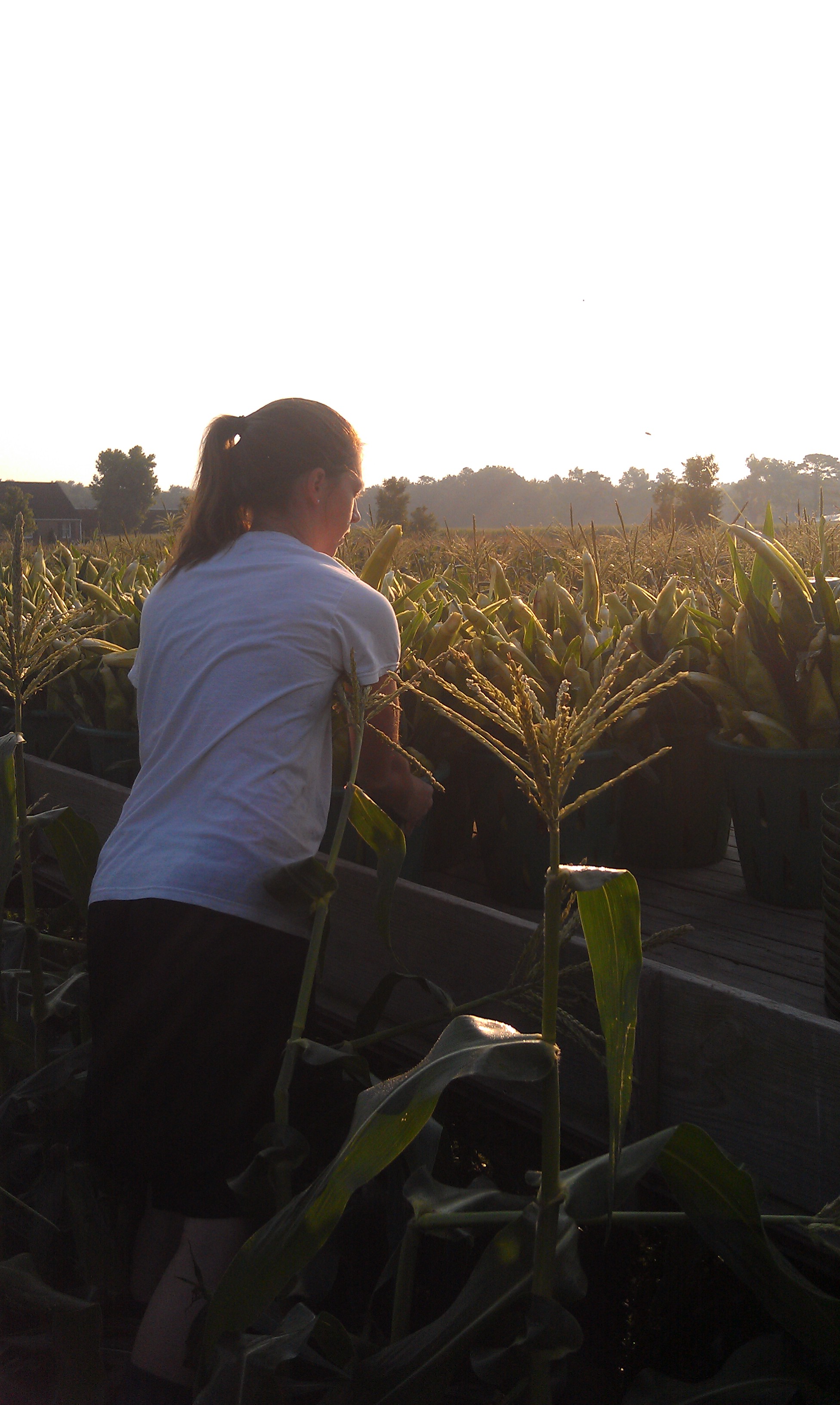 We also get a lot of questions on a daily basis. Customers want to know what’s in the field behind the stand. Mom explains the difference between soybeans, field corn, and sweet corn. At one time we even had a jar with shelled field corn and soybeans so we could show the difference. More and more customers are becoming removed from their food. They have never grown a garden or picked produce. But the questions are getting more complex. They may have read an article on GMO’s or the advantages of buying organic, but they have NO IDEA the physical effort it takes to grow, cultivate, and pick produce, especially corn, and even carry a full basket of corn. Farmer Dan even has carparl tunnel in his hands from pulling sweet corn so much. The consistent routine of twisting an ear off the stalk has given him much pain in his arm and elbow.
